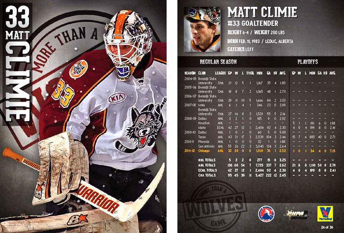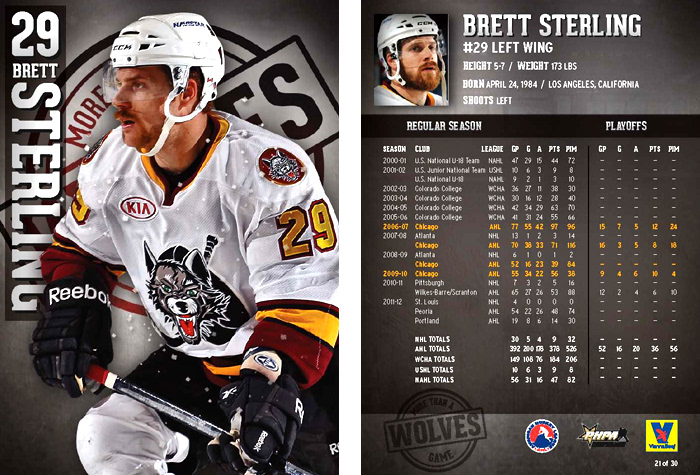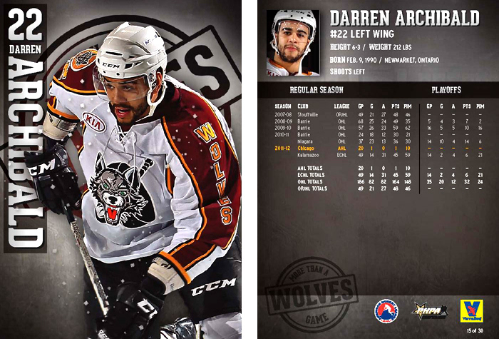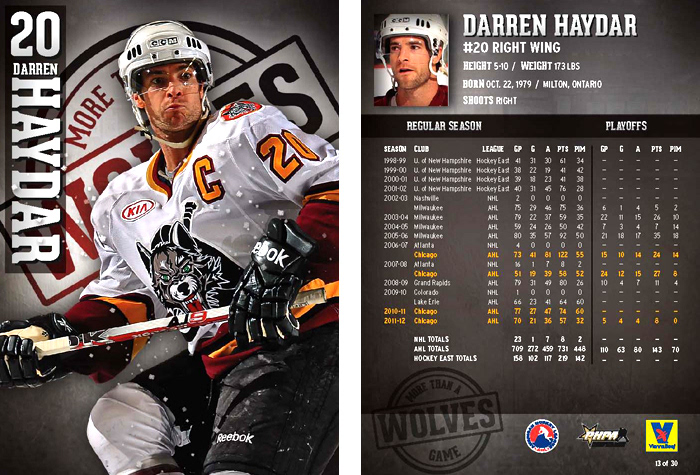 Chicago Wolves trading cards for the 2012-13 Season